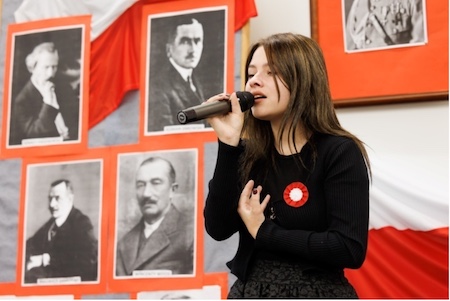 Następnie wysłuchaliśmy pieśni „Wojenko, wojenko” w wykonaniu Julii Kawałko oraz „Uwierz Polsko” w wykonaniu Igi Grątkowskiej.