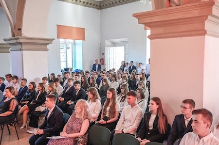 Inauguracja bieżącego roku szkolnego 2023/2024 rozpoczęła się w Sali Kolumnowej I Liceum Ogólnokształcącego uroczystym wprowadzeniem Sztandaru oraz wspólnym odśpiewaniem hymnu państwowego.