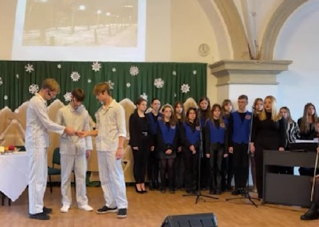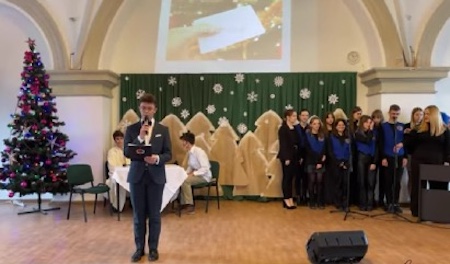 21 grudnia 2023 r. społeczność I LO licznie zgromadziła się w auli Szkoły i on-line przed monitorami, by wspólnie rozpocząć świętowanie. Na początku spotkania Pani Dyrektor Agnieszka Kowal wręczyła stypendia im. Bolesława Hassa najzdolniejszym uczniom, a następnie podczas części artystycznej pochyliliśmy się nad sposobem przeżywania Wigilii Bożego Narodzenia w różnych okresach historii naszej Ojczyzny.