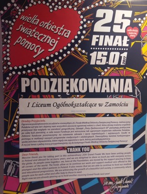 Podczas XXV finału WOŚP wolontariusze I LO zebrali w sumie 14.835.81 zł. Młodzież kwestowała na zakup sprzętu medycznego, również dla zamojskich szpitali i instytucji medycznych.