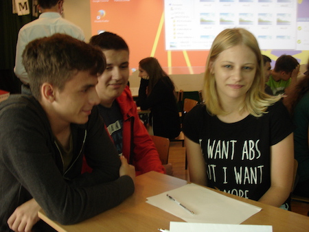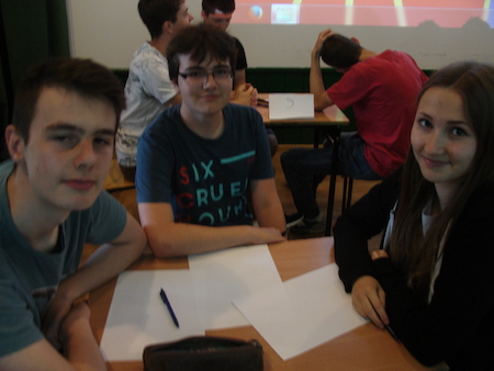 Uczniowie tworzyli zespoły 3 osobowe, każda z grup miała do rozwiązaniu rebusy oraz różne zadania matematyczne. Wygrała grupa pierwsza, czyli uczniowie klasy 1F - Joanna Jarosz, Krzysztof Paszko i Adrianna Siek. Dziękujemy wszystkim za udział w konkursie i gratulujemy zwycięzcom.