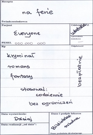Niezależnie od pogody, stanu portfela, humoru koleżanek, a nawet stanu łączy internetowych możesz sobie niezawodnie zapewnić udane ferie. Receptę realizujemy w bibliotece szkolnej. Zapraszamy!