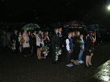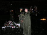 Następnie wszyscy zebrani przeszli w uroczystym pochodzie z orkiestrą wojskową i kompanią żołnierzy oraz pocztami sztandarowymi na Rotundę. Po odczytaniu apelu poległych i salwie honorowej, przybyłe delegacje złożyły biało czerwone wiązanki kwiatów przy tablicy pamiątkowej w strugach padającego deszczu.