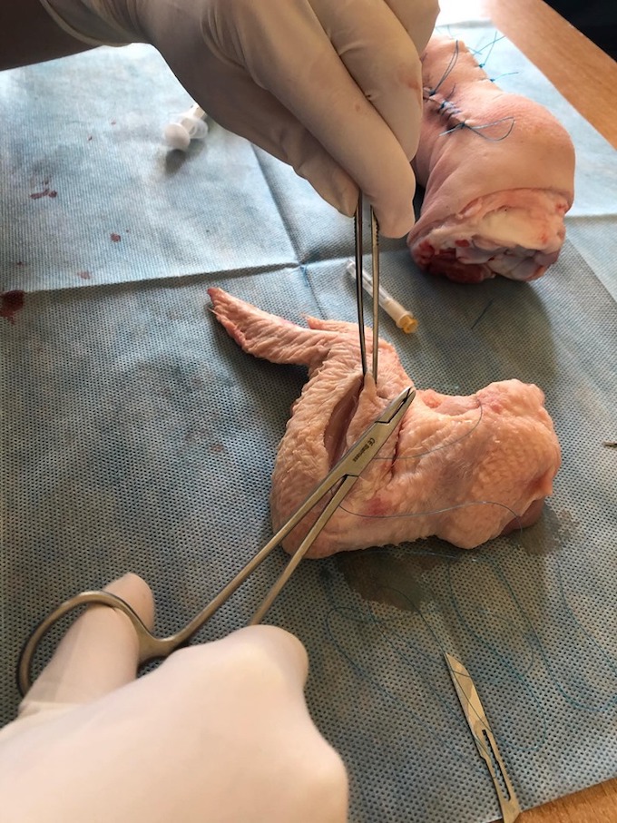 5. Zapoznają się z narzędziami chirurgicznymi, igłami oraz metodą zakładania szwów.