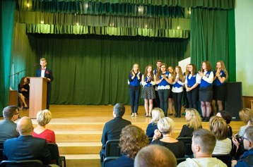 W krótkim przemówieniu Prezydent Andrzej Wnuk powitał panią Dyrektor Bożenę Krupę i jej zastępców oraz życzył uczniom i nauczycielom wielu sukcesów.