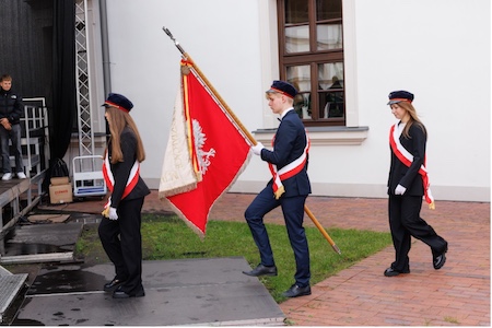 Ceremonię rozpoczęła Pani Dyrektor Agnieszka Kowal, witając uczniów, nauczycieli oraz zaproszonych gości. Następnie przewodniczący Samorządu Uczniowskiego, Patryk Drogoszewski, odczytał rotę ślubowania, po czym przedstawiciele klas pierwszych złożyli przyrzeczenie na sztandar szkoły, zobowiązując się do sumiennej nauki, odpowiedzialności oraz troski o dobre imię Liceum.