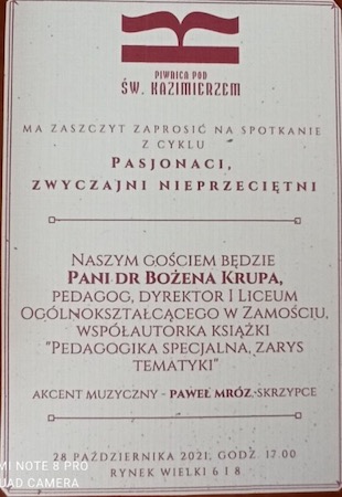 Pani dyrektor Bożena Krupa, będzie gościem pierwszego spotkania z cyklu „Pasjonaci, Zwyczajni Nieprzeciętni” zainicjowanego przez Piwnicę pod św. Kazimierzem.
