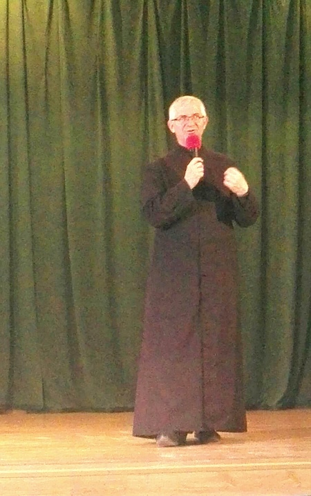 Skupił się głównie na zapoznaniu zebranych ze specyfiką pracy księdza egzorcysty, po czym udzielał wyczerpujących odpowiedzi na zebrane wcześniej pytania uczniów. Drugoklasiści pytali m.in. o to, w jaki sposób dochodzi do opętania i jakie są jego symptomy. Jak można rozpoznać osobę opętaną i w jaki sposób odróżnić ją od osoby chorej psychicznie. Ksiądz opowiedział o działaniu złego ducha, który wodzi nas na pokuszenie i próbuje wciągnąć w sieci zła. Udzielając odpowiedzi na zadawane pytania, opisywał, w jaki sposób dokonywane są egzorcyzmy, wraz z przedstawieniem przypadków i historii, z jakimi miał do czynienia.
