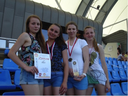 Nasze dziewczyny, podopieczne pani Grażyny Mandziuk, wzięły udział w wojewódzkich zawodach lekkoatletycznych w Puławach. Drużyna w składzie: Dominika Kozłowska, Klaudia Łapa, Aleksandra Tomasik, Aleksandra Deryło i rezerwowa Agata Niedźwiecka zajęły drugie miejsce w sztafecie szwedzkiej (100, 200, 300 i 400 metrów), zdobywając srebrne medale. Gratulujemy!