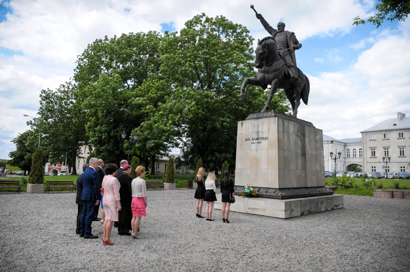 Następnie złożono kwiaty pod pomnikiem Jana Zamoyskiego fundatora miasta i Akademii Zamojskiej, w gmachu której mieści się Szkoła.