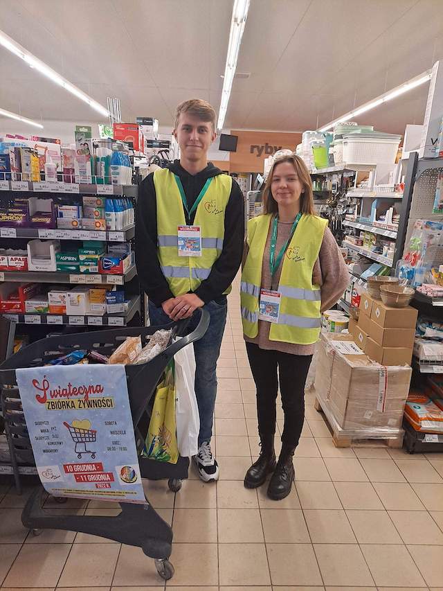 10 i 11 grudnia 2022 r. w sieci sklepów PSS Społem „Robotnik” w Zamościu oraz w sklepie Euro w Zawadzie i Wielączy Stowarzyszenie „Krok za krokiem” w Zamościu przeprowadziło Świąteczną Zbiórkę Żywności. Przedsięwzięcie wspierali wolontariusze z I Liceum Ogólnokształcącego w Zamościu, którzy poświęcając swój czas pomagali w zbiórce, zachęcając kupujących do przekazania żywności na potrzeby polskich i ukraińskich rodzin osób z niepełnosprawnością. Udało się zebrać produkty spożywcze z długim terminem ważności o łącznej wadze 1460 kg. Wszystkie zostały przekazane potrzebującym - w ten sposób zwykła paczka makaronu, kilogram cukru, czekolada… zmienią czyjeś życie na lepsze.