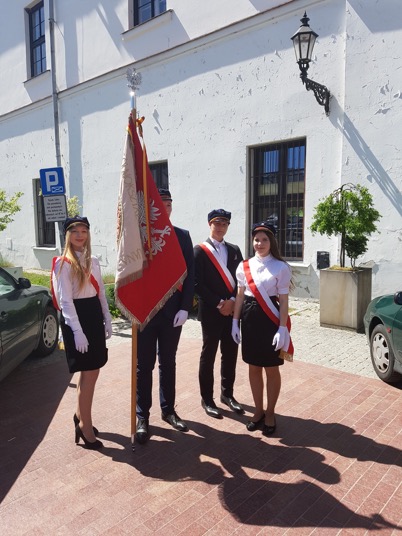 Poczet sztandarowy oraz przedstawiciele klas pierwszych z wychowawcami wraz z Panią Dyrektor uczestniczyli w miejskich uroczystościach 227. rocznicy uchwalenia Konstytucji 3 Maja.