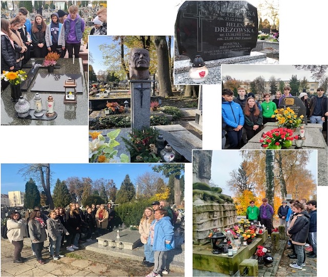 Serdecznie dziękujemy wszystkim, którzy zaangażowali się w upamiętnienie miejsc spoczynku Profesorów naszego Liceum. W projekcie koordynowanym przez bibliotekę szkolną udział wzięło 17 nauczycieli oraz 15 klas i Wolontariusze. Odwiedziliśmy groby 30 nauczycieli, którzy w różnych latach pracowali w naszej szkole. Sięgając do źródeł pisanych oraz osobowych - wspomnień (często rodziców lub dziadków) przypomnieliśmy postaci, które miały ogromny wpływ na kształtowanie umysłów i osobowości absolwentów, ale również na historię szkoły i rozwój kulturalny Zamościa. Zapalenie znicza z tarczą oraz chwila zadumy i modlitwy jest naszym podziękowaniem i dowodem uczestnictwa we wspólnej tradycji.