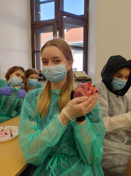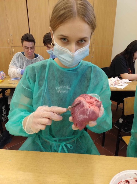 Wszyscy uczniowie mieli wyjątkową okazję by połączyć wiedzę teoretyczną o budowie anatomicznej serca człowieka z praktyką w postaci dokonania sekcji serca wieprzowego. Młodzież naszej szkoły z precyzją przyszłych chirurgów doskonale posługiwała się skalpelami, szczypcami chirurgicznymi dokonując wnikliwych obserwacji szczegółów anatomicznych: m. in głównych naczyń krwionośnych serca - „korony serca”, zastawek przedsionkowo-komorowych, zastawek półksiężycowatych, przedsionków, komór, naczyń wieńcowych, oceny grubości poszczególnych jam serca. Uczniowie mieli możliwość obserwować podstawowe techniki preparacyjne przy eksponowaniu poszczególnych struktur anatomicznych serca i porównywać wyizolowane elementy z rysunkami zawartymi w literaturze medycznej. Praktyczne zajęcia z anatomii miały m.in. zachęcić uczniów do wybierania kierunków studiów o charakterze medycznym. Sekcje zostały przeprowadzone z zasadami BHP oraz wykorzystaniem podstawowego sprzętu medycznego i odzieży ochronnej stosowanej przy tego typu zabiegach.