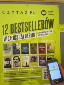 W dniach od 2 do 30 listopada można za darmo wypożyczyć 12 bestsellerowych książek w postaci e-booków i audiobooków. Wystarczy tylko pobrać aplikację Woblink ze sklepu App Store lub Google Play i przejść do zakładki Czytaj PL. Następnie zeskanować kod QR umieszczony na plakacie znajdującym się obok biblioteki. W tym roku na czytelników czekają min. Olga Tokarczuk, John Flanagan czy Remigiusz Mróz.