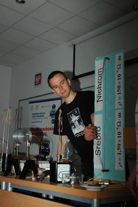 W dniu 24 maja uczniowie klas mat-fiz IA i IB pod opieką wychowawców p. E. Grzybek i p. G. Nogas uczestniczyli w pokazach fizycznych w auli PWSZ w Zamościu. Pracownicy naukowi z UMCS zaprezentowali i wykonali doświadczenia związane z przepływem prądu elektrycznego. Efekty doświadczeń były dla większości uczniów zaskakujące i pouczające do tego stopnia, że "włosy na głowie się jeżyły".