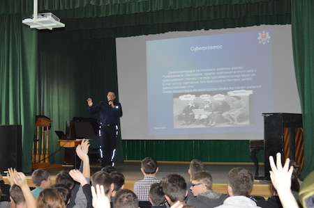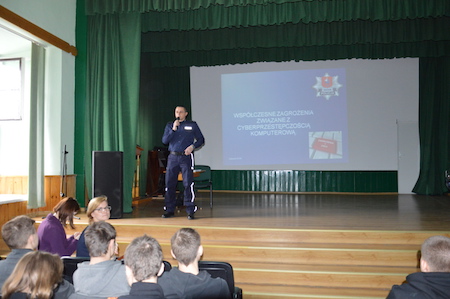 Podczas spotkania młodzież uzyskała informację m.in. na temat odpowiedzialności prawnej i ich konsekwencjach w zakresie szeroko rozumianej cyberprzemocy, rodzajów przestępstw komputerowych jak i co należy zrobić w przypadku stania się ofiarą z użyciem elektronicznych technologii. Podczas spotkania zaprezentowano film profilaktyczny "W sieci" a także zapoznano z ogólnopolską akcja edukacyjną Nieskradzione.pl gdzie uczestnikom przekazano ulotki.