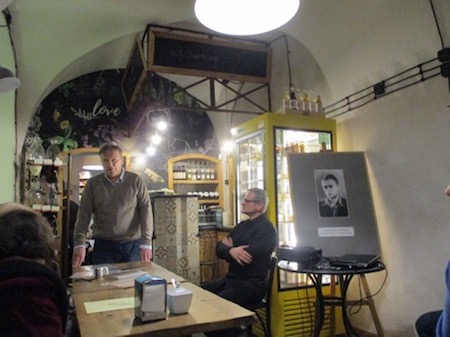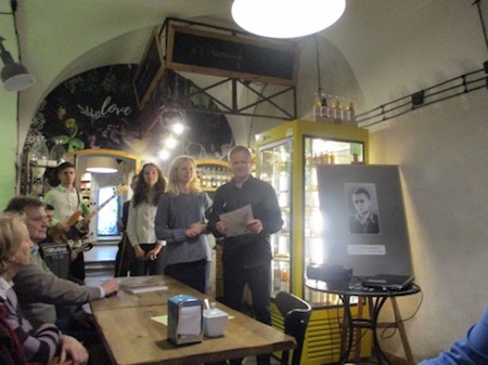 Dalsza część wieczoru odbyła się w kawiarni „Kawa na ławę” . Agnieszka i Piotr Linkowie, którzy pełnili rolę gospodarzy wieczoru, wprowadzili w poetycką zadumę odczytując wiersz poety „Staw się zaplątał w sieciach tataraku…”,
