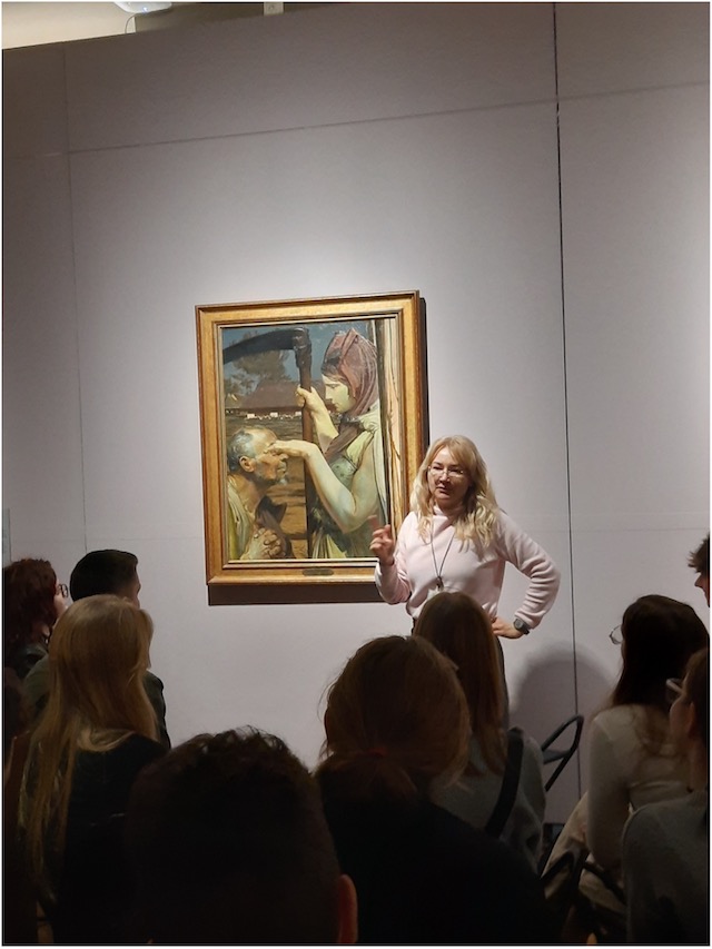 Pierwszym przystankiem w planie wycieczki było Muzeum Narodowe, gdzie, oprócz zwiedzania wystaw stałych, młodzież wzięła udział w lekcji muzealnej nt. sztuki i literatury XIX wieku, która przypomniała im specyfikę i osiągnięcia polskiej kultury epoki romantyzmu oraz wprowadziła w klimat realizmu za pomocą najwybitniejszych dzieł malarstwa polskiego doby pozytywizmu takich, jak, niedawno odzyskana, „Żydówka z pomarańczami” czy „Święto trąbek” A. Gierymskiego. Duże wrażenie zrobiła również ekspozycja obrazów Jana Matejki ze w słynną „Bitwą pod Grunwaldem”.