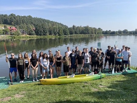 12 września 2023 r. uczniowie klas 1b i 1h uczestniczyli w wycieczce krajoznawczo-integracyjnej po Roztoczu. Płynąc kajakami poznaliśmy kręte meandry rzeki Wieprz wspólnie radząc sobie z problemami poruszania się za pomocą wioseł. Po pozytywnym wysiłku „doładowaliśmy baterie” samodzielnie upieczoną kiełbaską i chlebkiem.