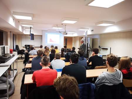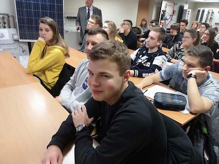 W czwartek (13.12.2018) klasa III b wraz z opiekunami: p. Agnieszką Muszyńską-Brzyską, p. Elżbietą Grzybek i p. Piotrem Maliszewskim wybrali się do Państwowej Wyższej Szkoły Zawodowej w Zamościu, aby wysłuchać wykładu na temat. „Budowa i zasada działania paneli fotowoltaicznych”.