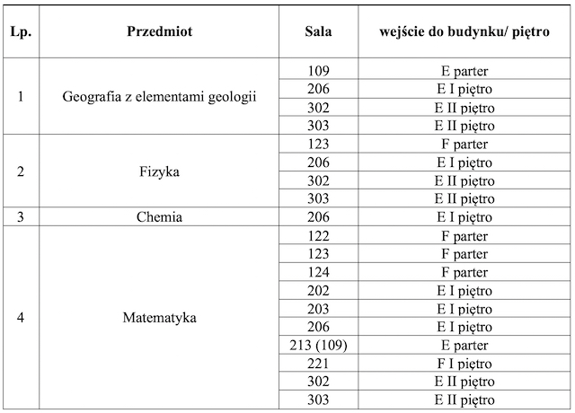 Poniżej wykaz sal w których przeprowadzona zostanie Olimpiada.