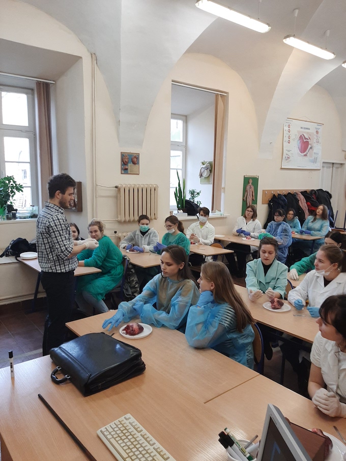 W dniu 18 lutego w naszej szkole odbyły się lekcje biologii w formie laboratoryjnej. W ramach współpracy z uczelniami wyższymi o kierunkach przyrodniczych uczniowie klasy II H i II I pod czujnym okiem Szymona Chrześcijana absolwenta szkoły oraz studenta 5 roku medycyny Śląskiego Uniwersytetu Medycznego mieli możliwość zapoznać się i przeprowadzić sekcję anatomiczną serca świni jako najbardziej zbliżonego budową do serca ludzkiego. Uczniowie mieli możliwość obserwować lokalizację zastawek przedsionkowo-komorowych, zastawek półksiężycowatych oraz lokalizację głównych naczyń krwionośnych. Sekcje zostały przeprowadzone z wykorzystaniem podstawowego sprzętu medycznego i odzieży ochronnej stosowanej przy tego typu zabiegach.
