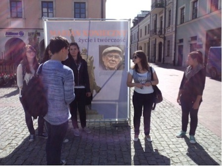 Uczniowie klasy 2j i 2c, z inicjatywy pani Profesor Barbary Jędruszczak, w dniu 23 czerwca zwiedzali wystawę plenerową Muzeum Zamojskiego na Rynku Solnym. Pierwsza część wystawy poświęcona jest profesorowi Marianowi Koniecznemu, rzeźbiarzowi, twórcy min. spiżowego pomnika Jana Zamoyskiego. Niedawno została odsłonięta tablica poświęcona temu wybitnemu artyście w Zamojskiej Alei Sław, galeria rzeźb profesora znajduje się na ulicy Łukasińskiego.