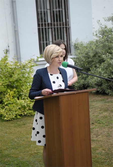 Uroczystość zakończenia roku szkolnego rozpoczęła się Mszą Świętą w kościele św. Katarzyny. Dalsza część uroczystości miała miejsce na dziedzińcu Szkoły, gdzie zebranych powitała przewodnicząca SU Barbara Czausz. Pani Dyrektor Bożena Krupa w swoim przemówieniu dziękowała nauczycielom, pracownikom administracji i uczniom za sumienną pracę, a rodzicom za okazywane wsparcie. Pani Dyrektor w dość nietypowy sposób pozwoliła nam spojrzeć na wakacje. Okazało się, że mają one inny wymiar dla matematyka, inny dla polonisty, inny dla biologa itd. W zasadzie wielbiciel każdego szkolnego przedmiotu może spojrzeć na ten czas we właściwy sobie sposób – szukać źródła inspiracji (polonista), analizować zachodzące latem procesy w przyrodzie (biolog), lub po prostu – policzyć co się da (matematyk). Ważne wydaje się spostrzeżenie dotyczące fizyki – wakacje to czas, kiedy ciało pozostaje w spoczynku.