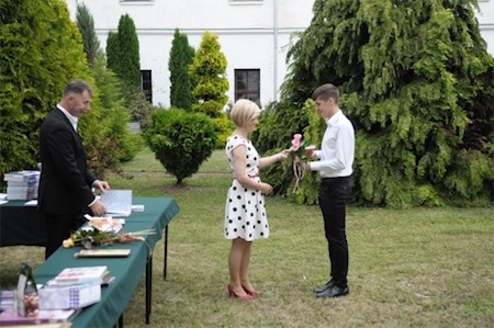 Następnie głos zabrała Pani Agnieszka Kowal, Dyrektor Wydziału Oświaty, która w imieniu Prezydenta Miasta Zamość Andrzeja Wnuka wręczyła dyplomy i nagrody uczestnikom Olimpiady Zwolnieni z Teorii – Justynie Nadłonek, Barbarze Ptak i Dominikowi Dębińskiemu.