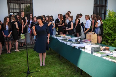 Pani Dyrektor Agata Waszek gratulowała młodzieży i nauczycielom osiągnięć naukowych, a także wręczyła nagrody i dyplomy laureatom olimpiad, konkursów, uczniom wyróżniający się w nauce. Na koniec przekazała przesłane przez Pana Dyrektora Zygmunta Kamińskiego, który w tym roku wyjątkowo nie mógł być z nami, podziękowania i życzenia dla uczniów i nauczycieli.