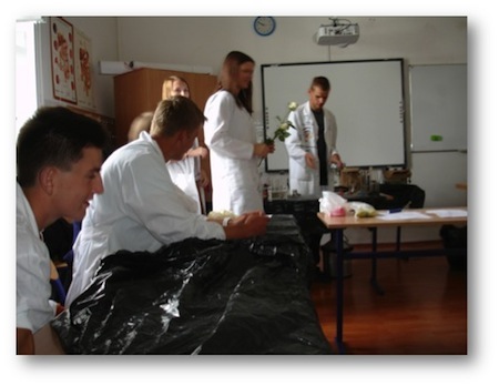 • Dzień IV: Przygotowanie uczniów do pokazu doświadczeń, który odbywa się piątego dnia, doświadczenia z ciekłym azotem, identyfikacja związków organicznych