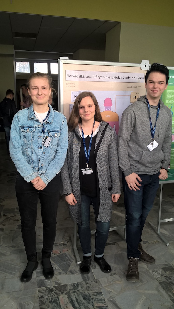 Miło nam poinformować, że do II etapu Olimpiady Wiedzy Chemicznej z Uniwersytetem Jagiellońskim zakwalifikowali się zarówno maturzyści jak i uczniowie młodszych klas: Katarzyna Kowalczyk 4f, Szymon Malczenko 4f, Karolina Słotwińska 4f, Wiktoria Portka 4f, Karol Komajda 4f, Oliwia Stanibuła 4g, Jakub Bednarczyk 1g, Kacper Bartnik 2i, Zuzanna Tychlowiec 2h, Michał Kliszcz 2h, Małgorzata Kowalczyk 2h, Maria Surmacz 2h, Emil Pawelczyk 2h, Julia Pupiec 2f, Adam Wieczorek 3g, Jakub Pacaj 3g, Krzysztof Dąbrowski 3g.