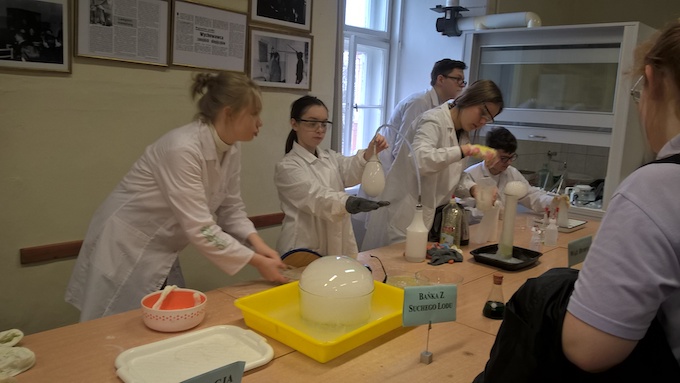 Nie były to jednak zwykłe wykłady! Z każdą partią materiału związane były liczne doświadczenia, które ułatwiły zrozumienie trudnych pojęć czy zapamiętanie charakterystycznych reakcji, co istotne, każdy uczeń miał możliwość wykonania ich samodzielnie pod okiem p. T. Deptuły doktoranta Wydziału Chemii Uniwersytetu Warszawskiego oraz  wolontariuszy (studentów i uczniów) – współpracujących z Fundacją „Przyszłość w nauce”.