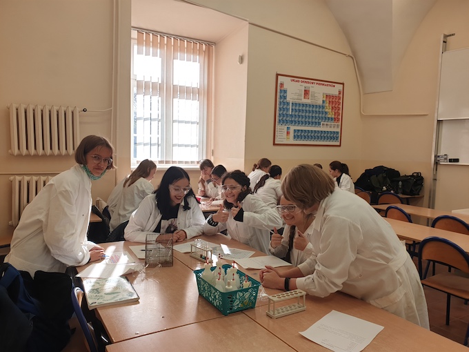 W zajęciach laboratoryjnych wzięli udział uczniowie z klas 2dg i 2eg realizujący chemię na poziomie rozszerzonym. Warsztaty pomogły na nowo, po długiej przerwie, rozbudzić ciekawość poznawczą uczniów, zainspirować do twórczego myślenia, stawiania hipotez, wyciągania wniosków. Równolegle odbyły się także warsztaty, pozwalające poznać techniki szybkiego uczenia się i zapamiętywania. Udany dzień zakończył konkurs wiedzy chemicznej z licznymi nagrodami.