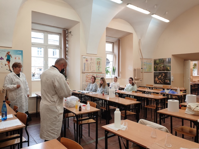 W piątek 28 maja 2021 r. mogliśmy gościć w naszej szkole panią dr Jadwigę Stachowicz wraz z współpracownikami Katedry Chemii Uniwersytetu Przyrodniczego w Lublinie. Pod ich kierunkiem odbyły się warsztaty chemiczne w ramach projektu: "Ścieżką CHEMiczną: uczę, doświadczam, rozumiem, korzystam, inspiruję".